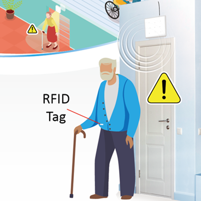 - Utilizes RFID smart tags (attached to elderly/patients clothing/Shoes/bracelets...)