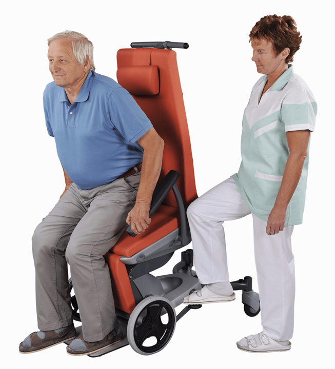 • The hydraulic lift for tipping the seat and adjusting the armrests for arm support totally eliminates the physical exertion of staff necessary for manipulating the patient.
