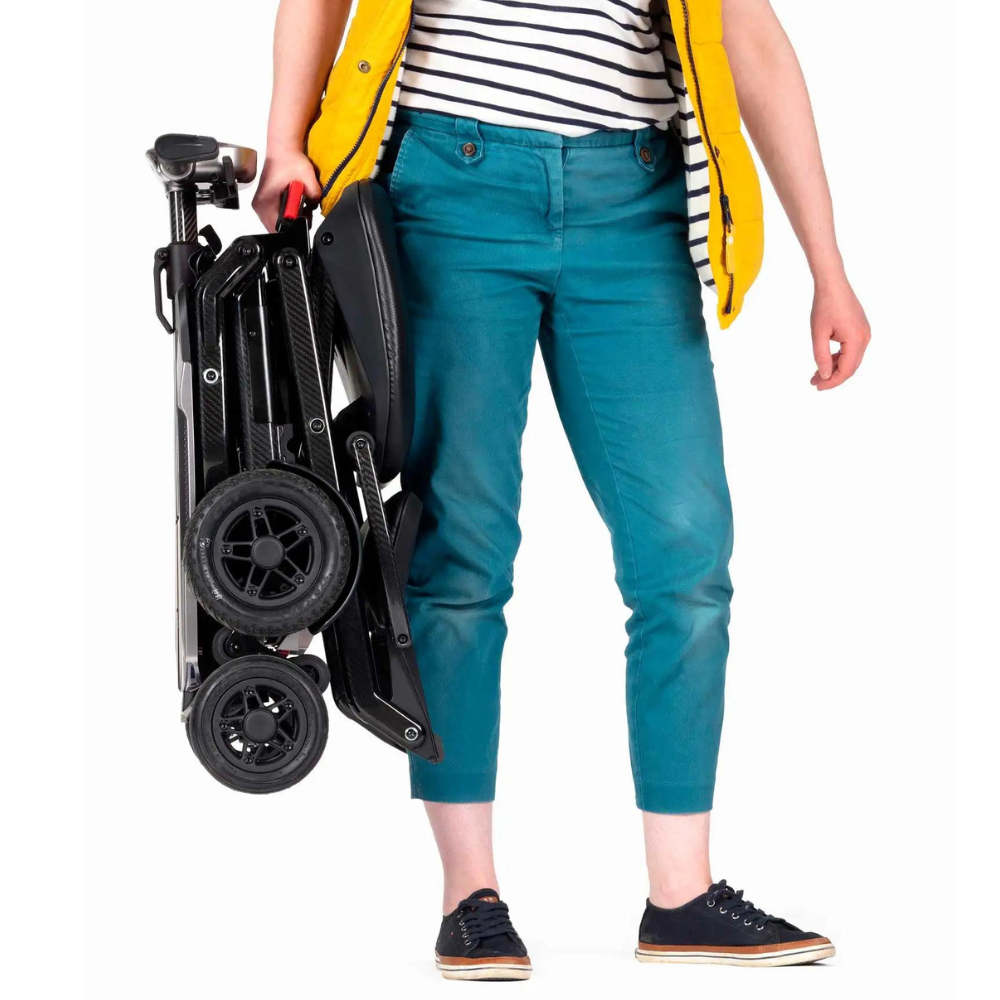 Bringing together the latest technology to make your daily life easier, the AirFold Pro is equipped with an automatically folding carbon fiber frame that folds in an incredibly short amount of time. It can also be folded manually if there is no power. Stylish and robust, this ultra-light travel wheelchair weighs only 19.9kg, making it currently the lightest and most compact automatic folding electric wheelchair/mobility scooter available.