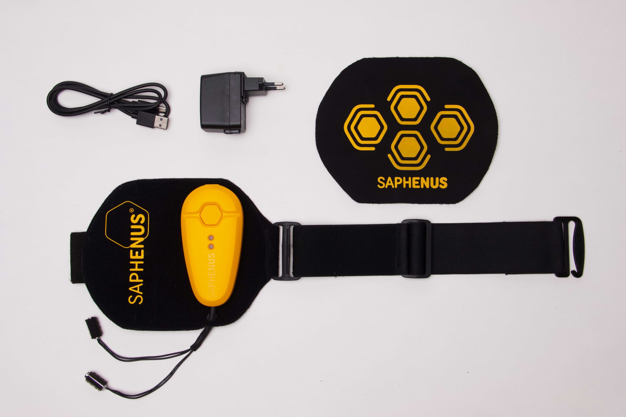 This is an advanced medical device designed to provide therapeutic vibration treatment for phantom limb pain and mobility enhancement. It consists of a cuff with two vibration motors attached to the residual limb, activated via an app that synchronizes virtual foot movements with vibrations, helping restore sensory feedback and activate the feeling of the missing foot. This non-invasive therapy improves blood circulation, accelerates wound healing, reduces neuromas, and supports lymphatic drainage. Regular use helps train or generate a phantom limb map, significantly reducing phantom pain and enhancing users' quality of life, even for those with low mobility. Hyperion embodies innovative rehabilitation technology aimed at improving patient well-being and independence.