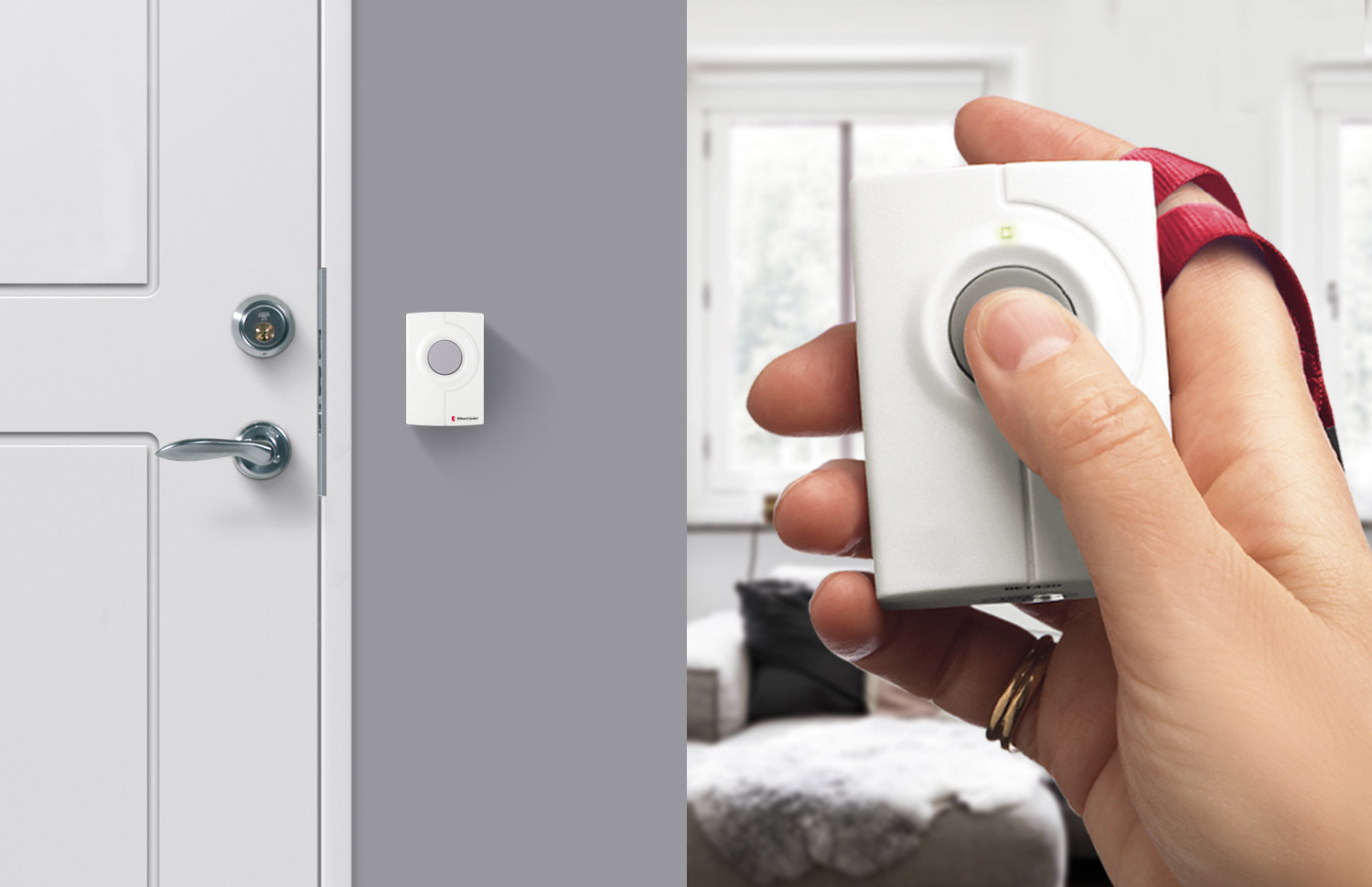 However, since the transmitter is very lightweight and can be worn with the included lanyard, the transmitter can be used to call for attention from anywhere in your home. When you press the button, the transmitter sends a radio signal to the Visit™ receivers.