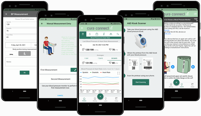 The CURA CONNECT Telehealth platform is an online remote platform that allows medical staff to continuously manage the patient's vital signs. Clients can install the CURA CONNECT mobile app on their smartphones and pair Bluetooth medical devices (Bluetooth blood pressure monitor, Bluetooth blood glucose meter, Bluetooth weight scale, Bluetooth oximeter, Bluetooth thermometer) to the APPS, and the APPS will automatically store the measured blood pressure, heart rate, blood glucose and body weight data. Clients can also manually enter body temperature and blood oxygen concentration data. Data can be displayed on different charts and monthly calendars to facilitate analysis of data trends and changes in patient health. Clients can choose to upload all data to the CURA CONNECT remote web platform of medical staff. Medical staff can track the data of different patients from the CURA CONNECT remote web platform, analyze the health distribution of client groups, export reports and send reminders and messages to connected clients; achieving comprehensive and efficient remote medical management.