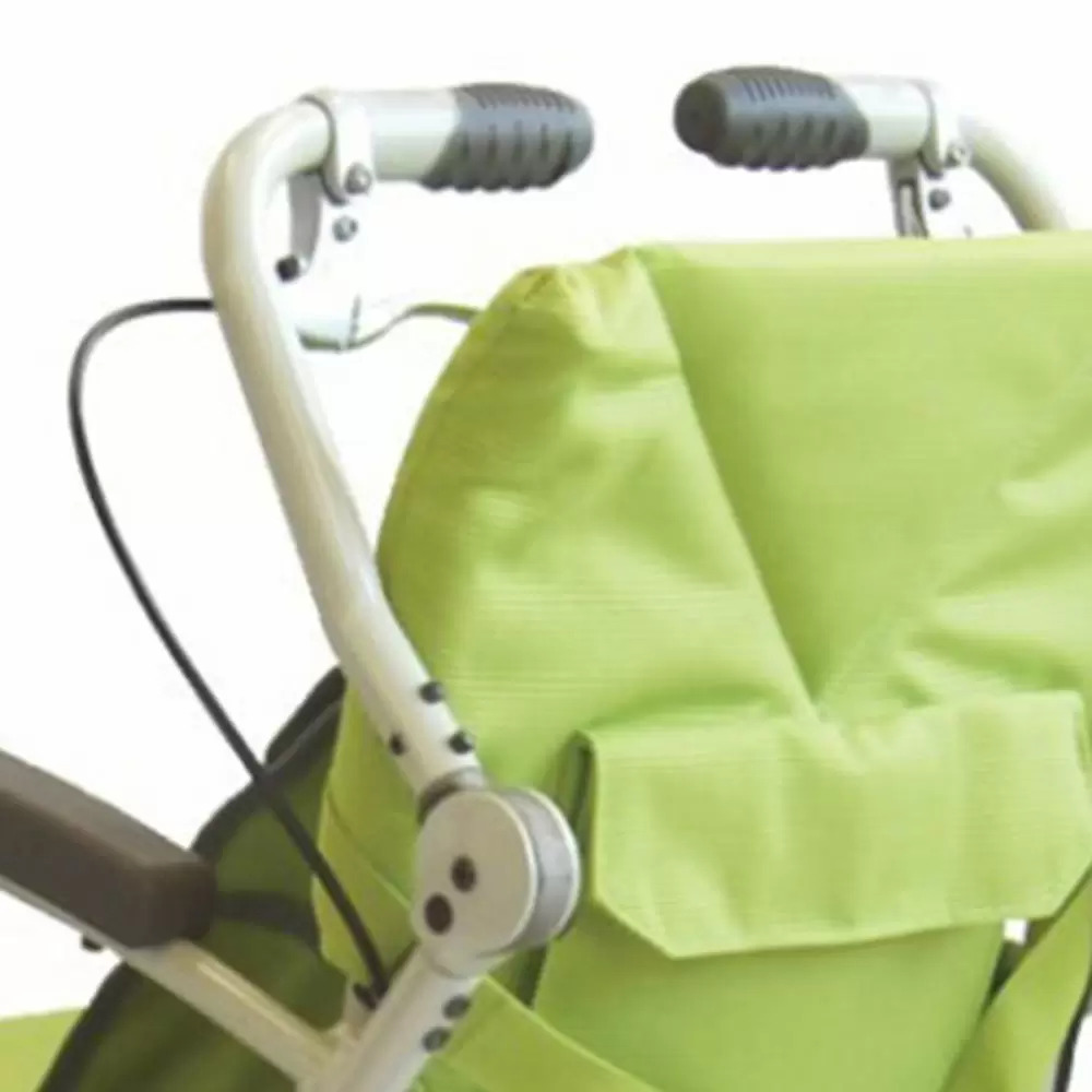 A Japanese premium quality aerospace grade aluminium alloy 2-in-1 rollator wheelchair fitted with comfortable memory form seat and padded half foldable backrest; flipable footplates; curvy smooth attendant's handles and effective brakes; and durable 18" and 6" PU solid airless tyres.