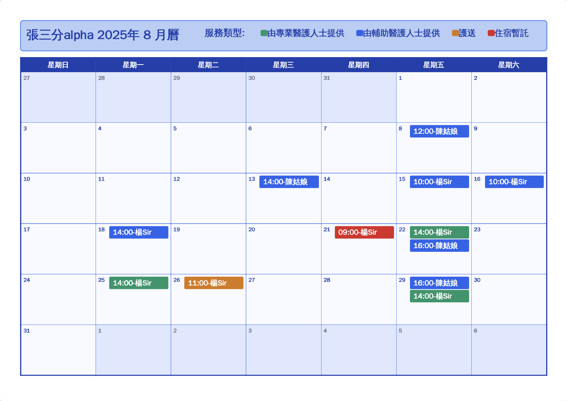 3. Reminder notifications for appointments + monthly service timetable for clear viewing
