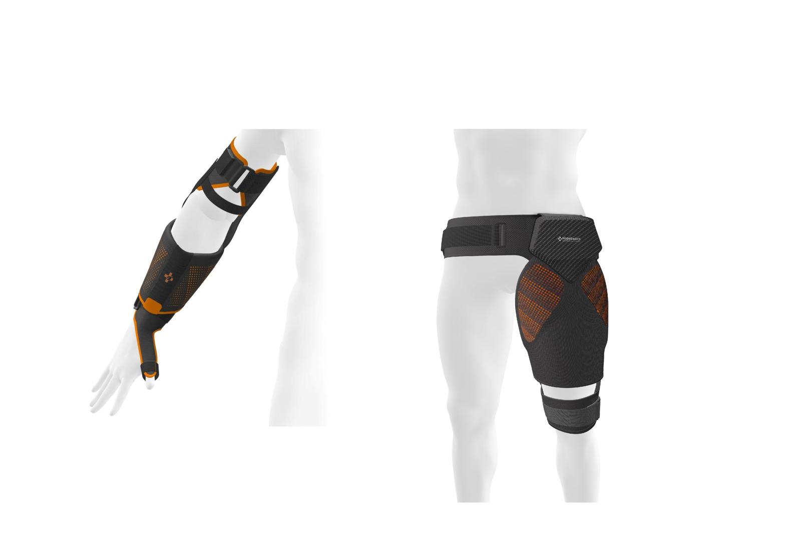 HandTasker is a personalized hand rehabilitation robot that offers different training modes, including brain-computer interface, myoelectric drive, and task-oriented training. It has been adopted by local hospitals. XoMuscle is a next-generation artificial muscle technology that surpasses human muscle performance and can be used for upper and lower limb training.