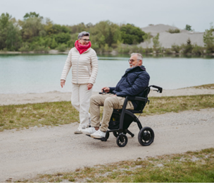 Motion Electric combines a rollator and electric wheelchair. This gives users more independence, allowing them to travel alone and reduce the caregiver’s workload.