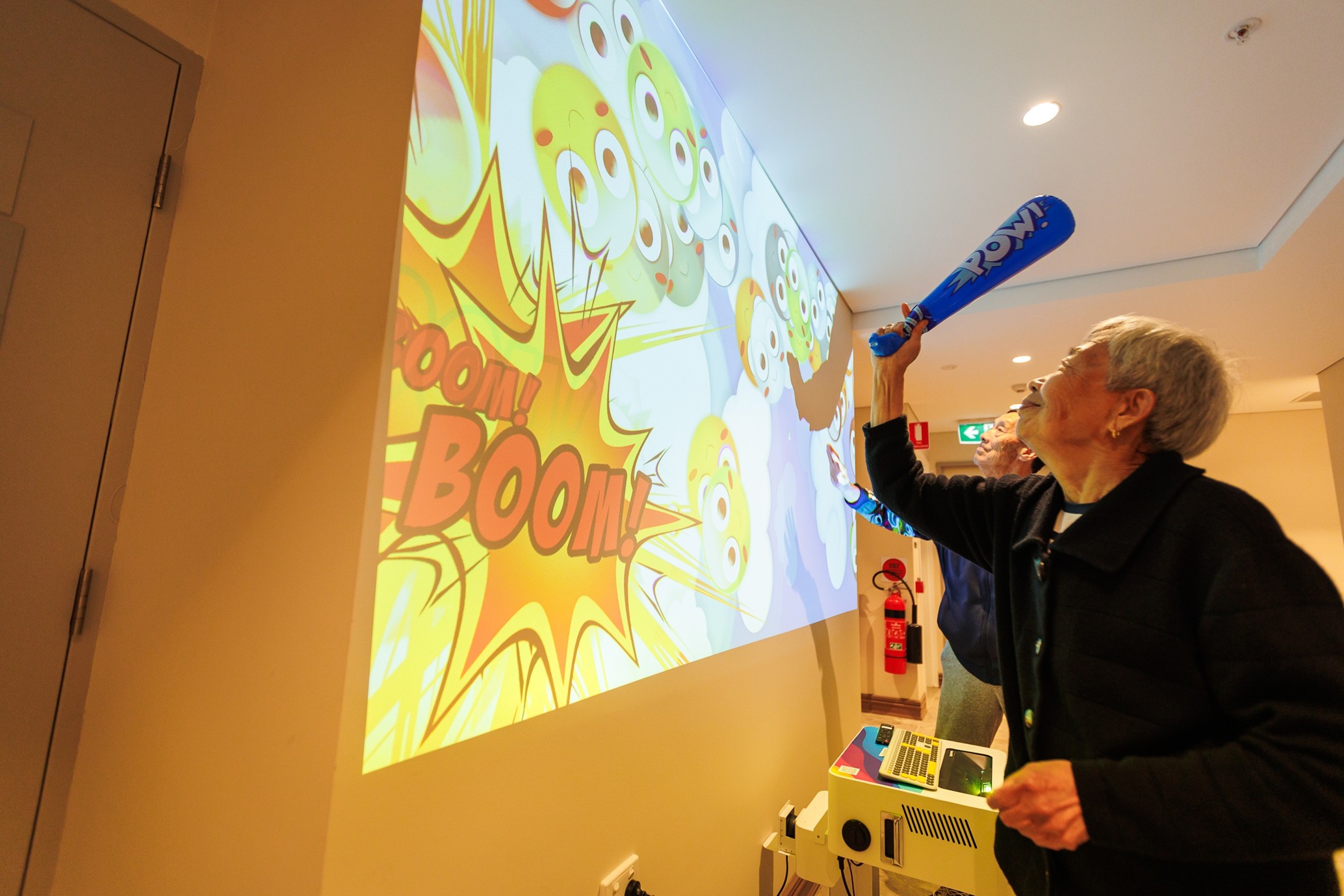 Encourage elderly people to engage in rehabilitation sports and cognitive training by utilizing a variety of gerontech and innovative approaches. These may include activities such as boxing practice, immersive virtual travel experiences, interactive projection games, and interactions with intelligent robots. These interventions aim to promote both physical and mental well-being among the elderly. Besides, as a gerontech test bed, we collaborate with companies and provide recommendations for product improvement.