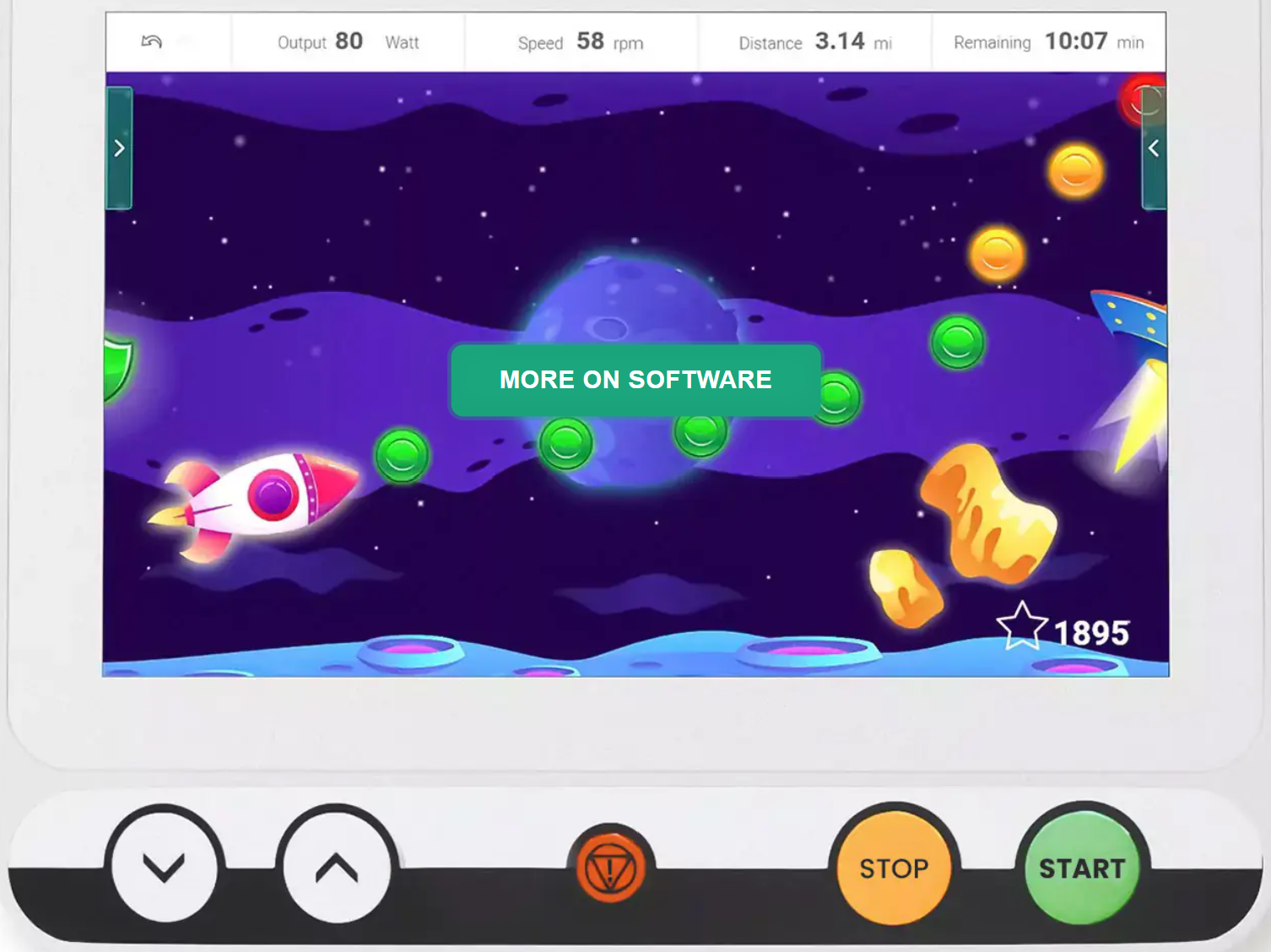 The toro is an active, passive and assistive cycling exerciser. It equipped with Electrical height adjustment, sturdy and stable motor, and motivating software. Smooth transition from passive support for the weakest patients at 1 - 90 rpm to active input with 250 watts peak up to 120 rpm for strong patients – training can help patients reach their ideal challenge point. Barrier-free entry, for almost all types of wheelchairs. Unilateral or bilateral exercises, for special needs. Strength training concentric/eccentric, for many therapy goals.