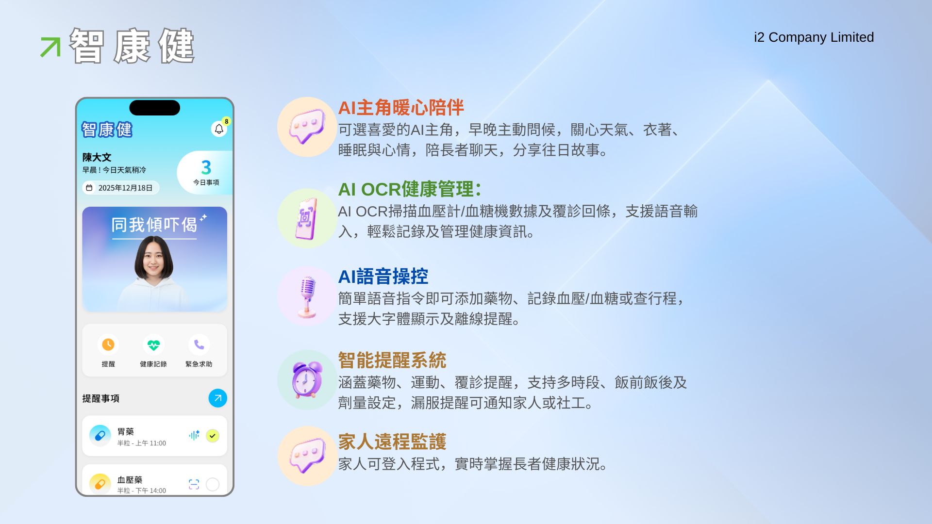 SmartCare is a mobile app designed for elderly users in Hong Kong and the Greater Bay Area, offering the following features: