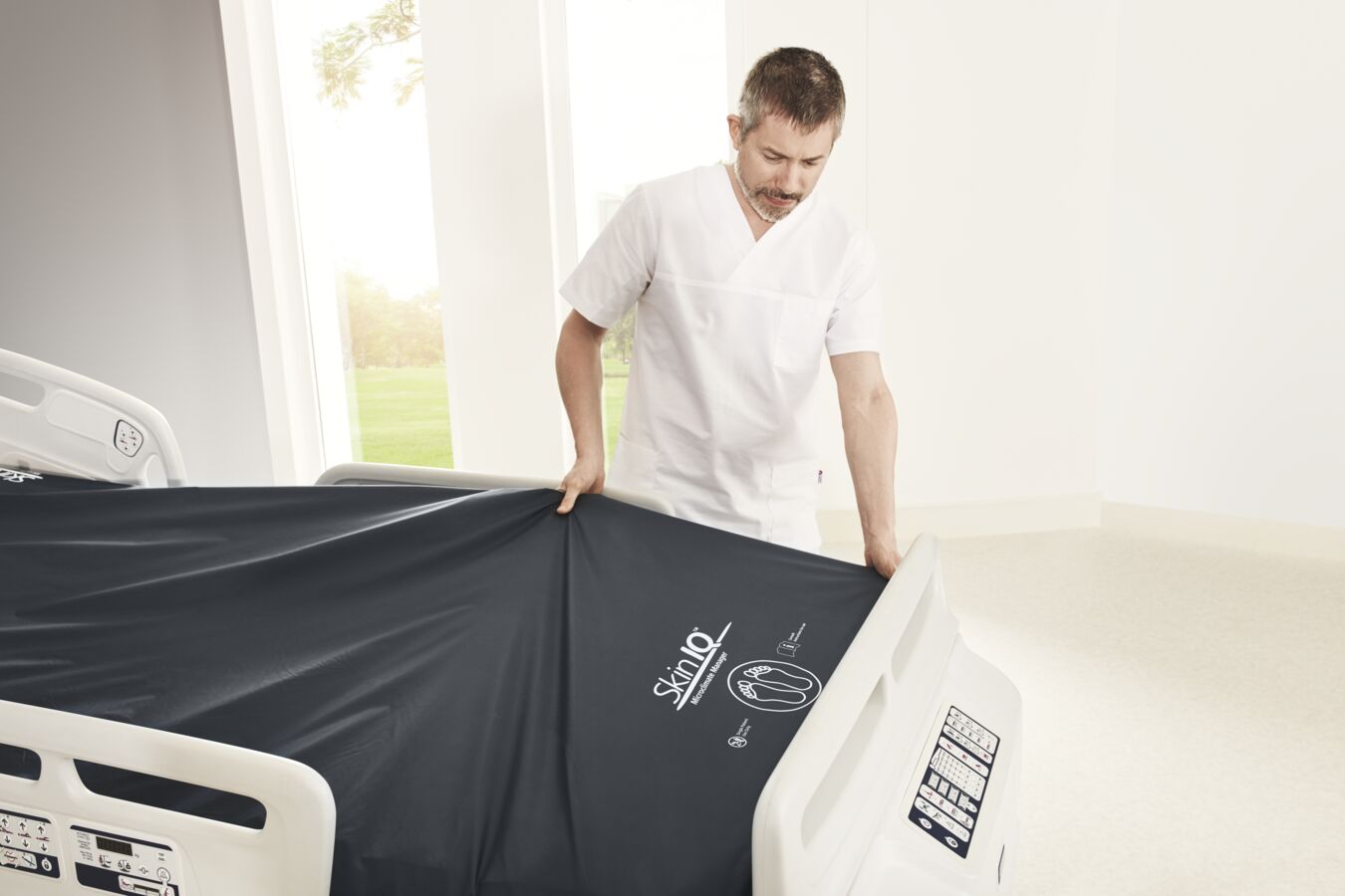Skin IQ® 365 is a reusable, powered coverlet for use in combination with a pressure redistribution surface to help prevent pressure injuries. Skin IQ uses Negative Airflow Technology® (NAT) to continually draw away excess moisture and help to control temperature at the skin/surface interface (microclimate).