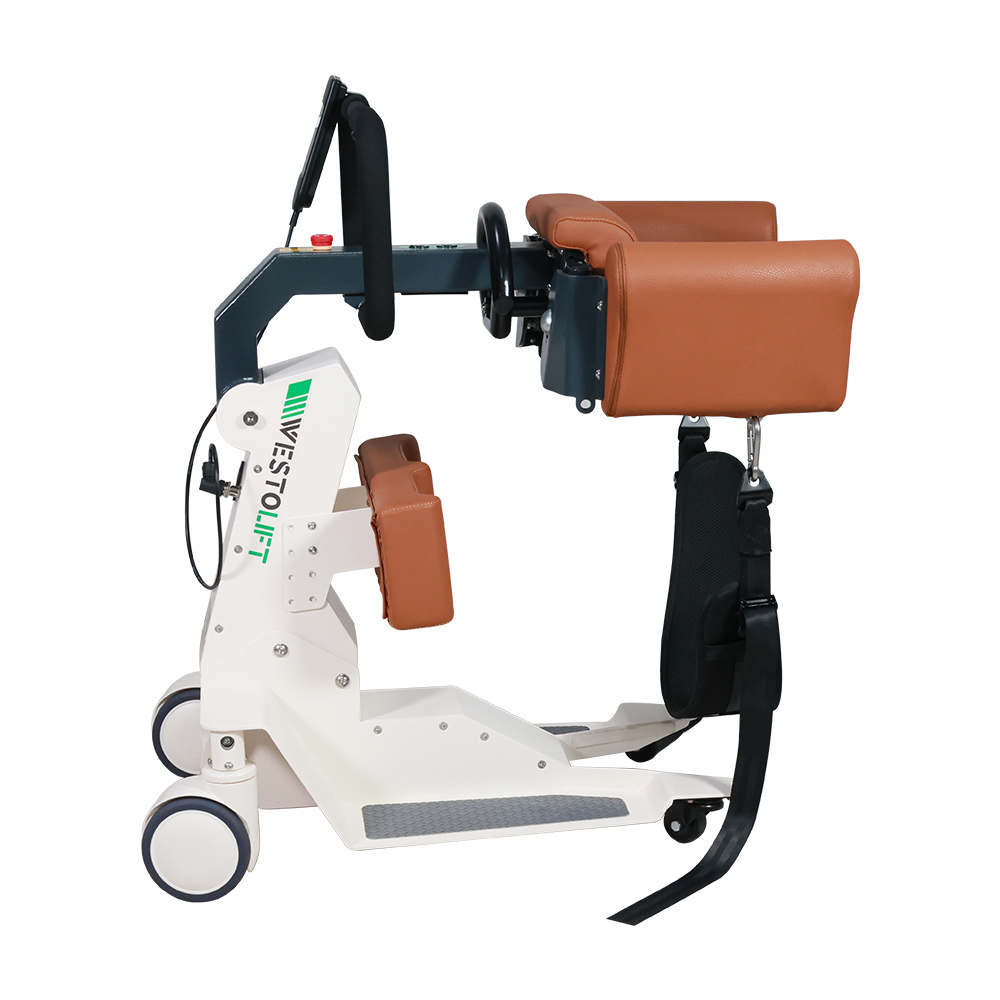仕頓安護商用版護理移位機,採用的獨特抱臂調節飛輪裝置,自我調整抱臂的飛輪調節設計,針對不同胖瘦體型人群,可以輕鬆調整左右抱臂間距,更適合醫療養老機构等公共場所使用。 單獨設計的特製安全兜帶,讓手臂無力的人也可輕鬆適用。